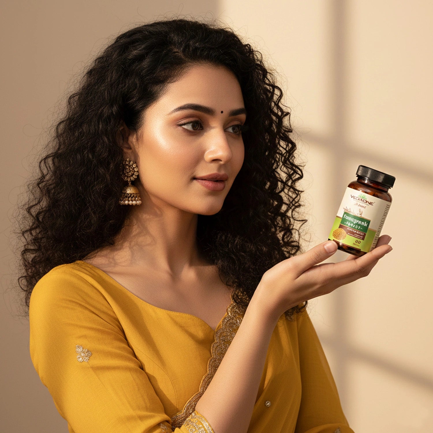 Vedaone Fenugreek (Methi) Tablets deliver the powerful benefits of pure methi seeds in an easy-to-consume daily supplement. Rich in fiber, antioxidants, saponins, and essential nutrients, fenugreek has long been used in Ayurveda to support digestion, regulate glucose levels, promote metabolism, and improve skin and hair health.