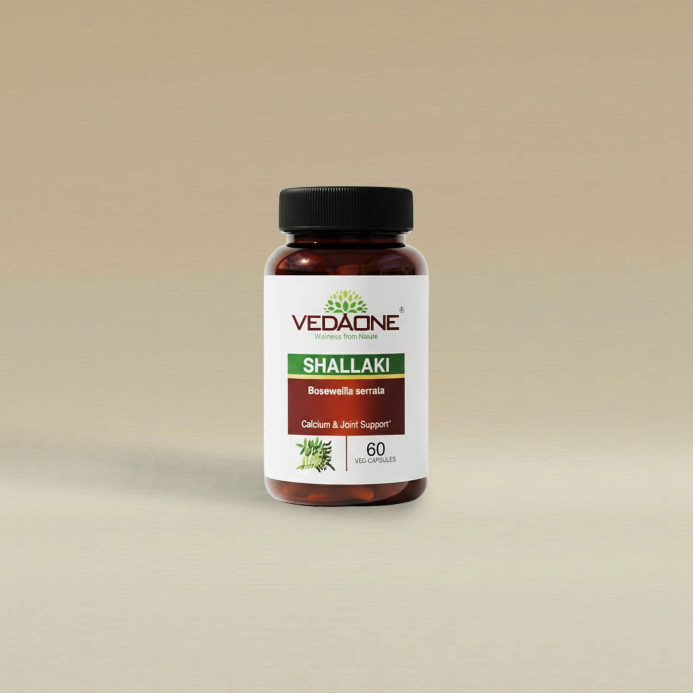 Vedaone Shallaki Veg Capsules contain Shallaki (Boswellia serrata), a revered Ayurvedic herb traditionally used to support joint comfort, mobility, and musculoskeletal wellness.