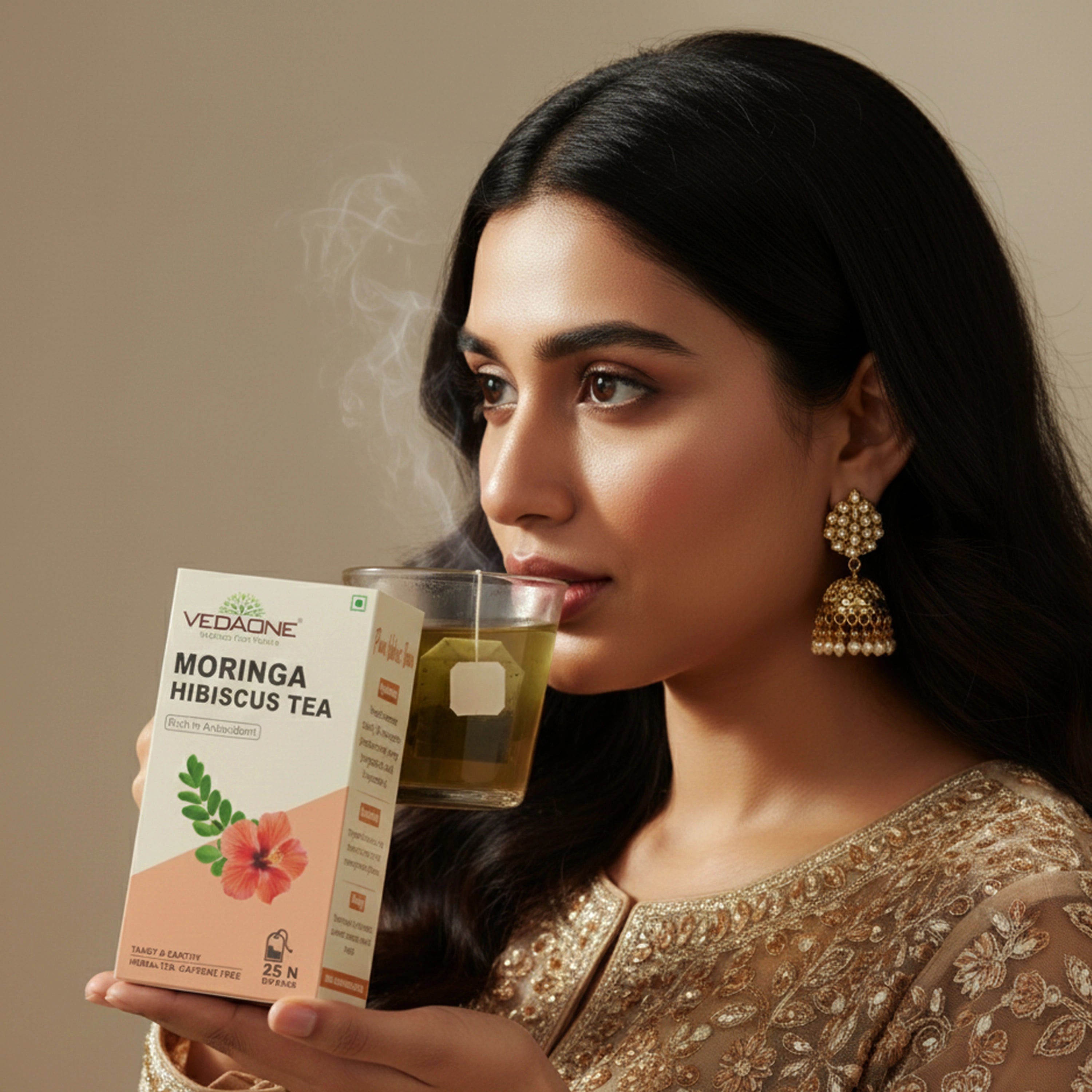 Vedaone Moringa Hibiscus Tea is a thoughtfully crafted herbal infusion combining moringa leaves and hibiscus flowers, offering a naturally vibrant, refreshing tea experience suitable for everyday wellness routines.