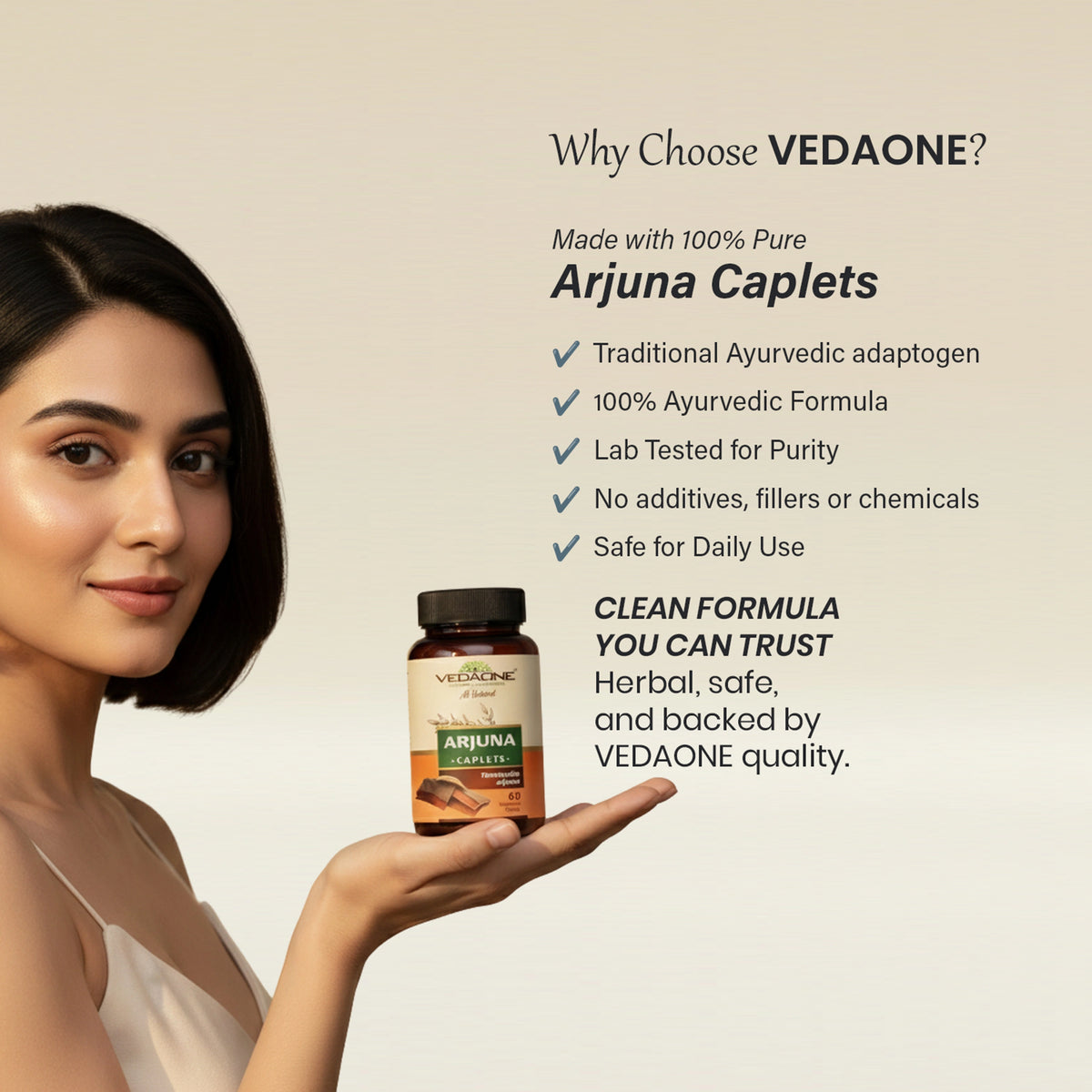 Manufactured under stringent quality standards, Vedaone Arjuna Caplets are free from artificial additives, preservatives, and synthetic chemicals.