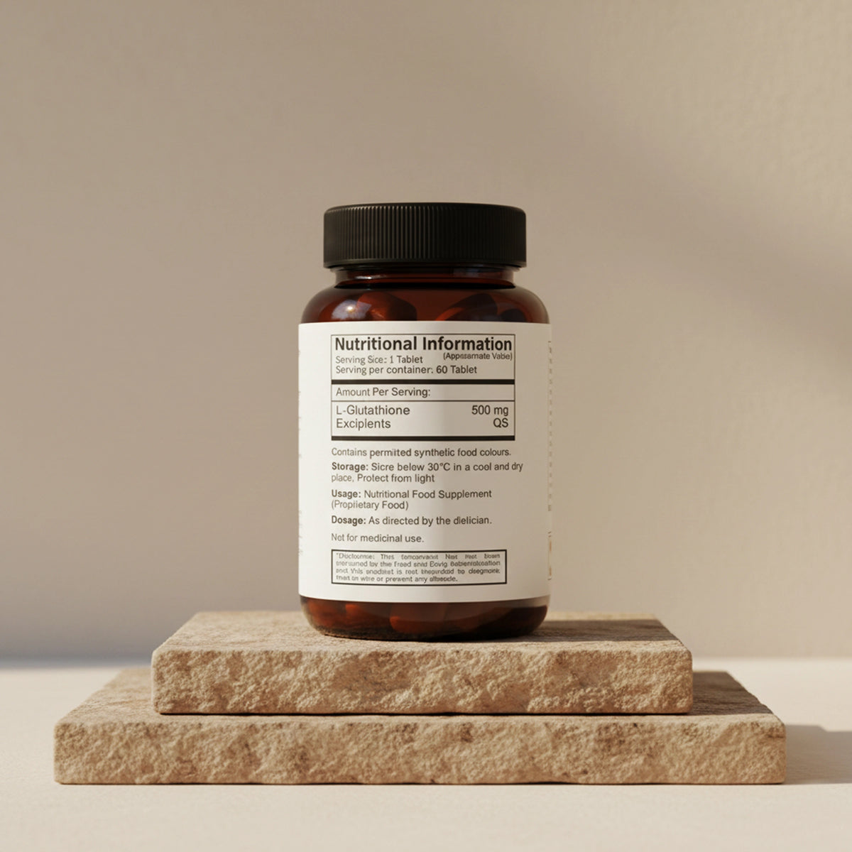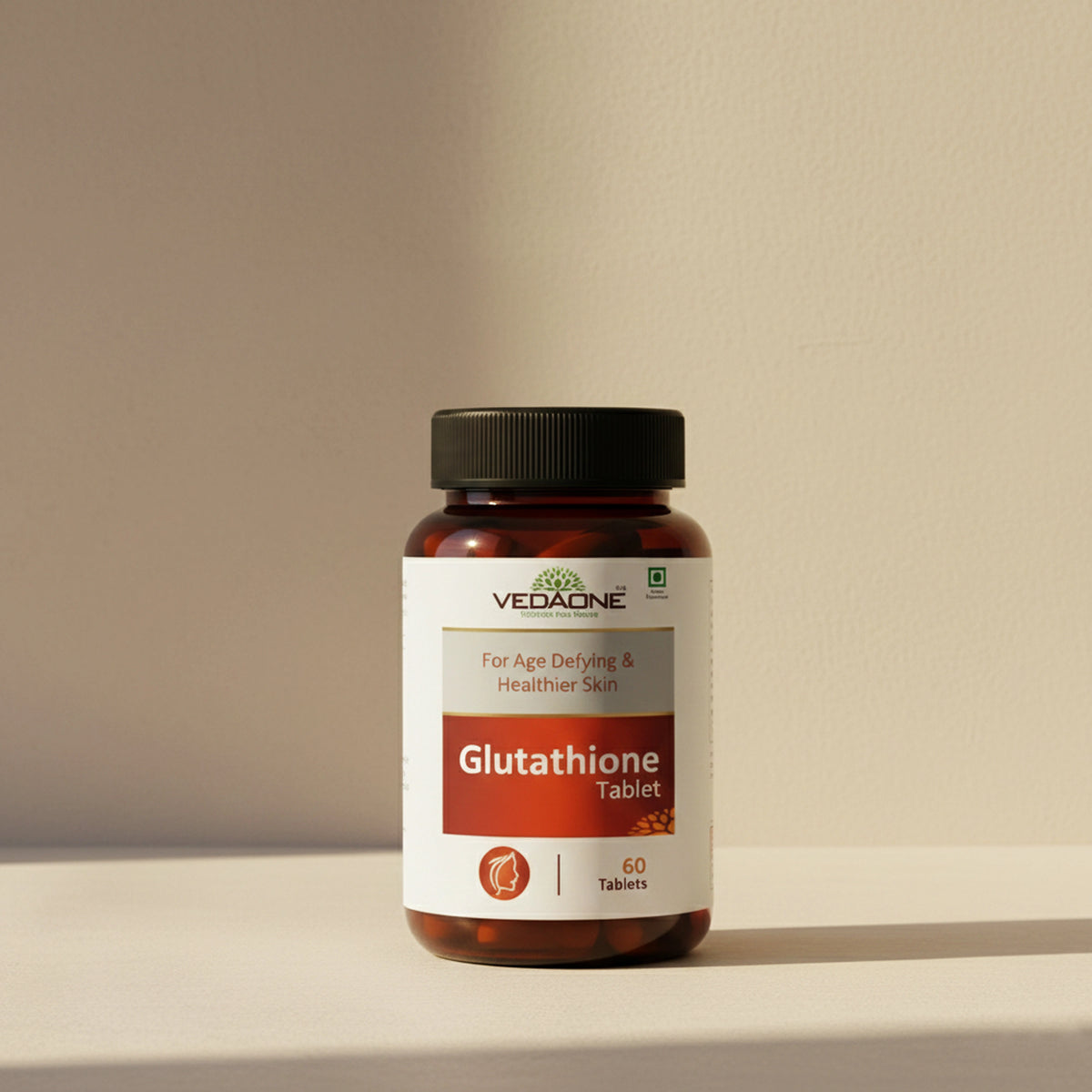 Vedaone Glutathione Tablets are formulated with L-Glutathione, a naturally occurring antioxidant found in the body that plays a key role in cellular protection, detoxification processes, and skin health.
