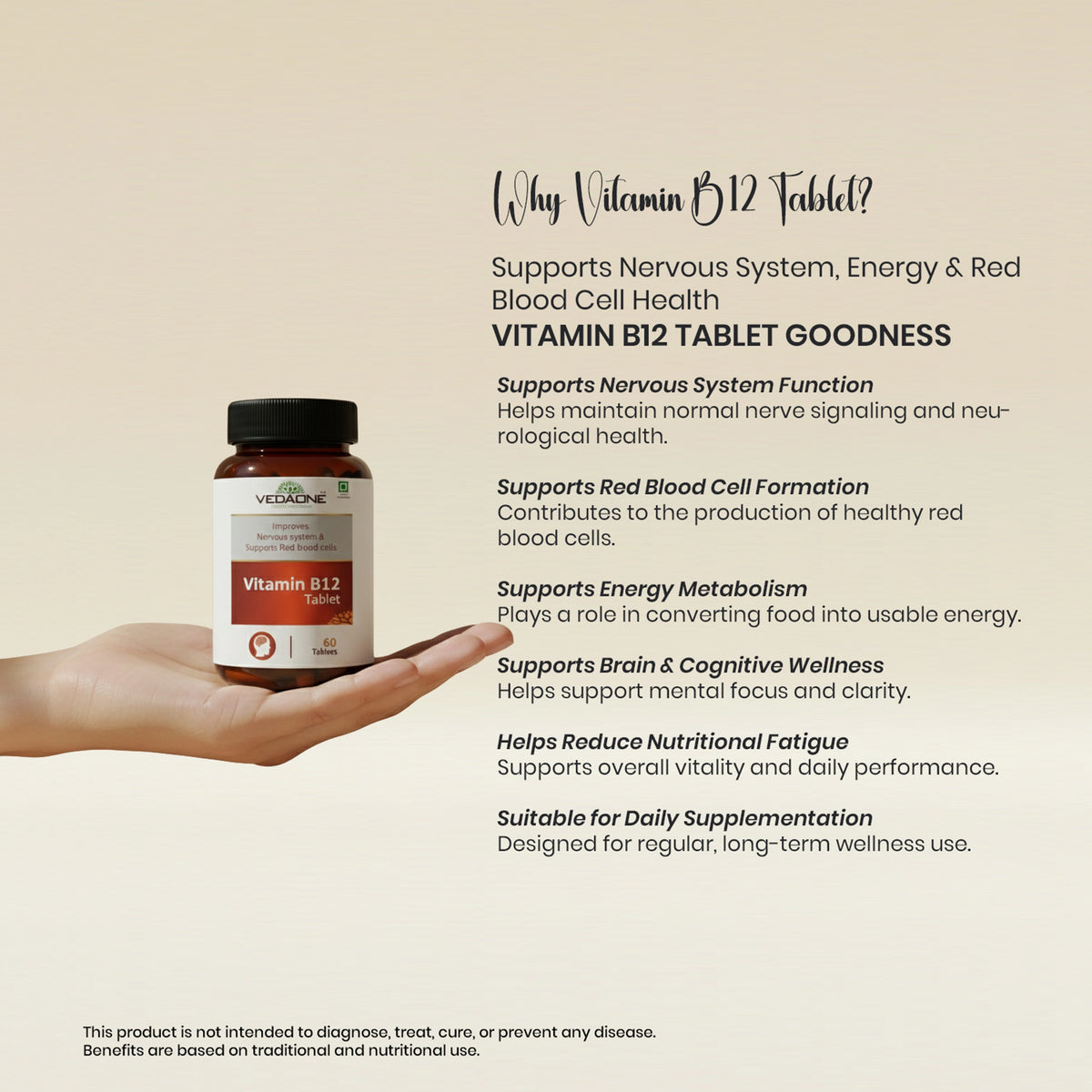 Vedaone Vitamin B12 Tablets 60 Tablets | Supports Nervous System, Energy & Red Blood Cell Health
