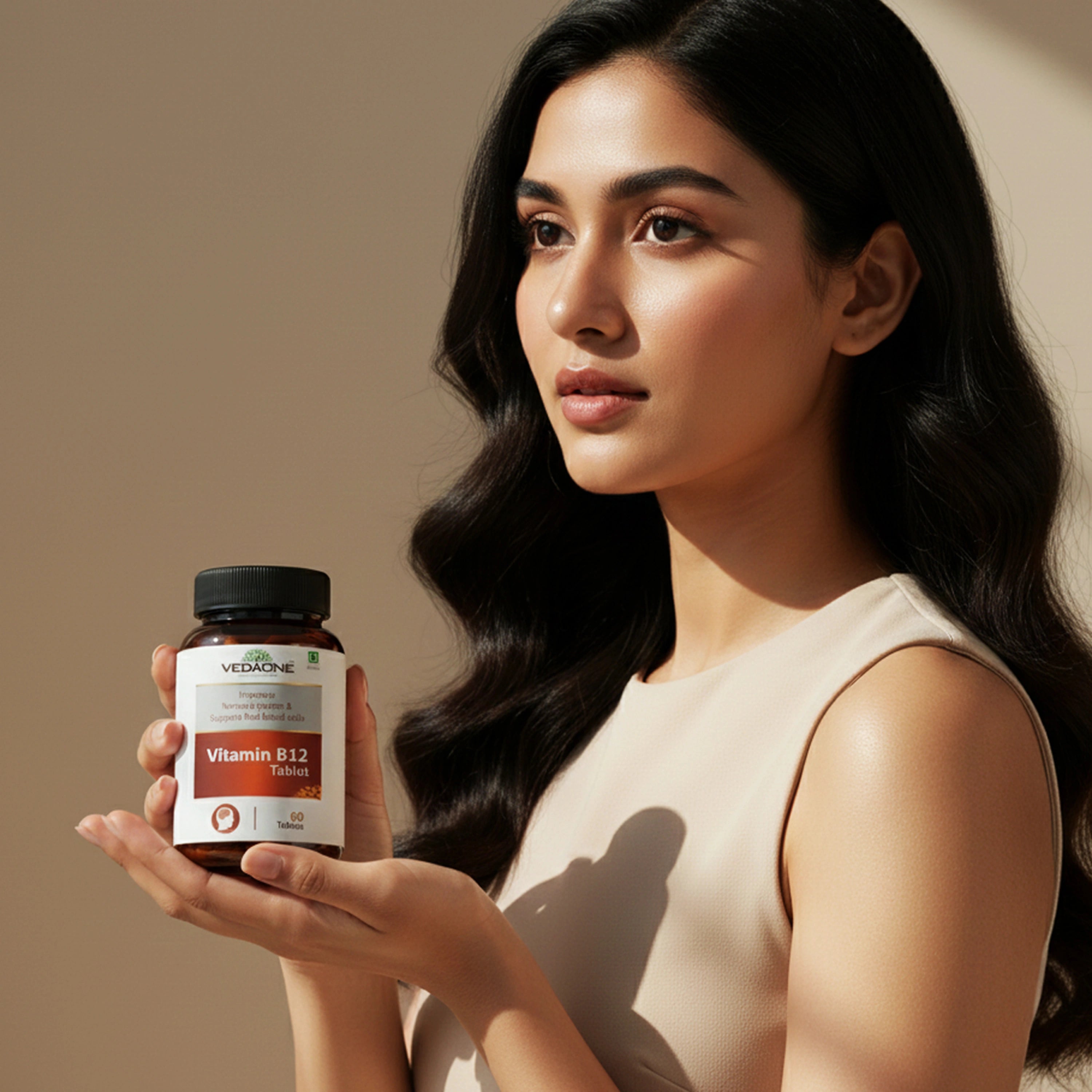 Manufactured under strict quality standards, Vedaone Vitamin B12 Tablets are suitable for daily supplementation and long-term wellness support.